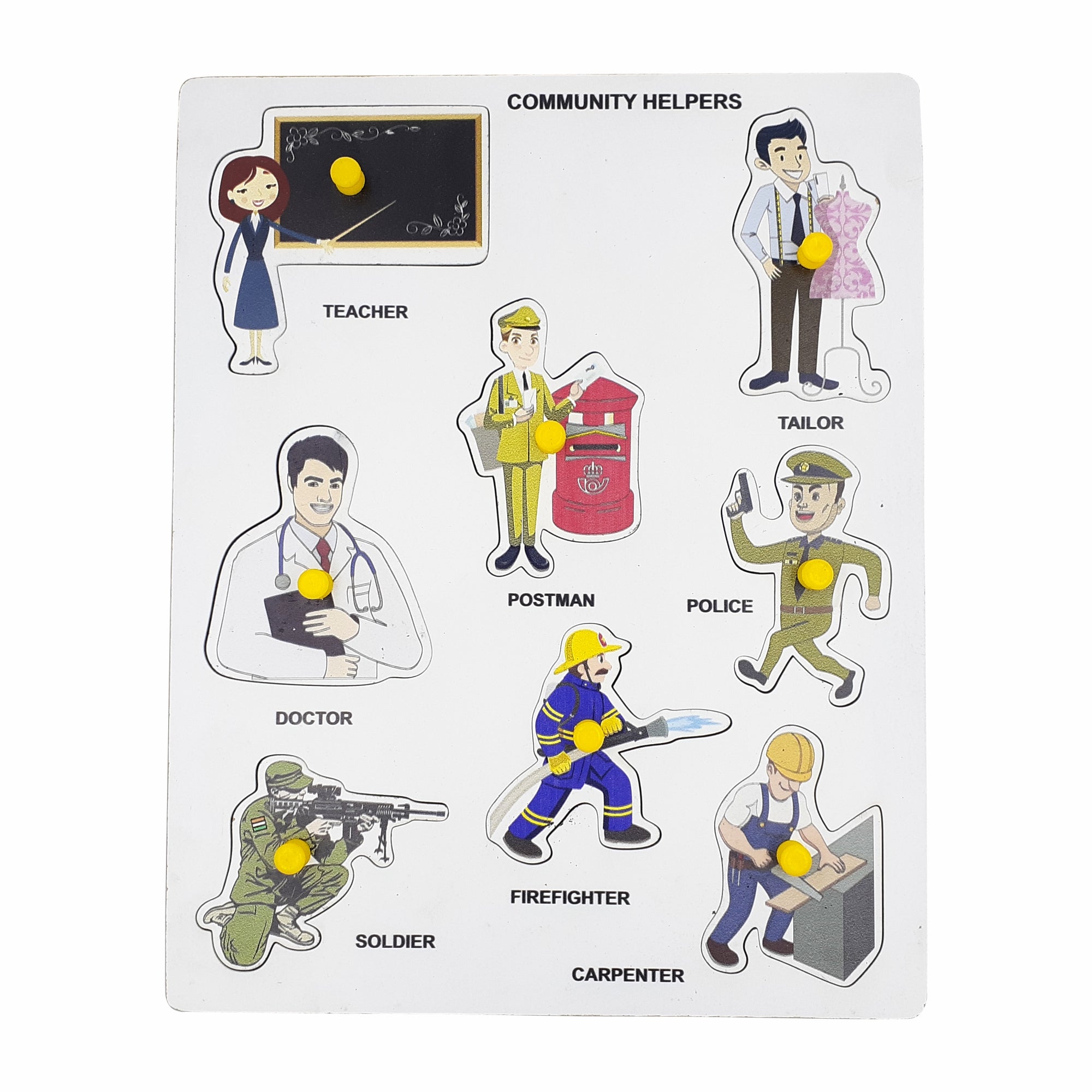 • WOODEN TOYS FOR KIDS - wooden Community helpers learning puzzle for kid with knob, which makes more attractive. This board helps the children to learn faster than the books